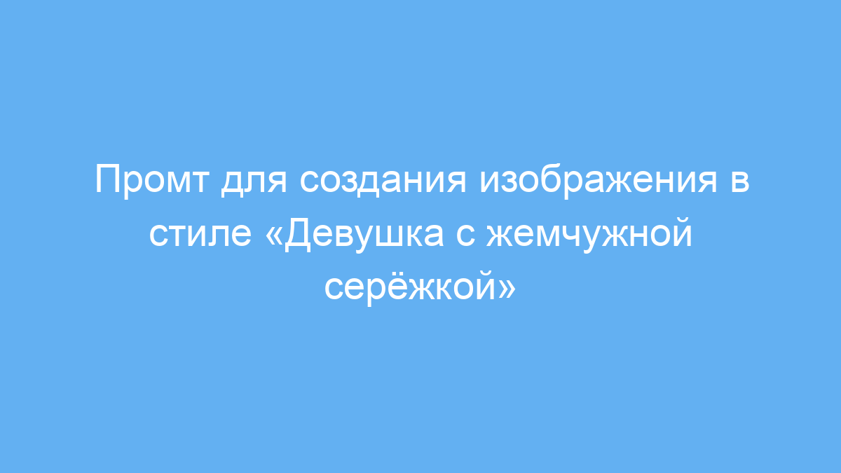 Этот промт предназначен для художников цифрового искусства, дизайнеров, иллюстраторов и всех, кто хочет быстро создать необычное изображение с атмосферой классической живописи. Он позволяет перенести пользователя или персонажа в стилистику известной картины Яна Вермеера «Девушка с жемчужной серёжкой», подчёркивая мягкое освещение и загадочный взгляд.