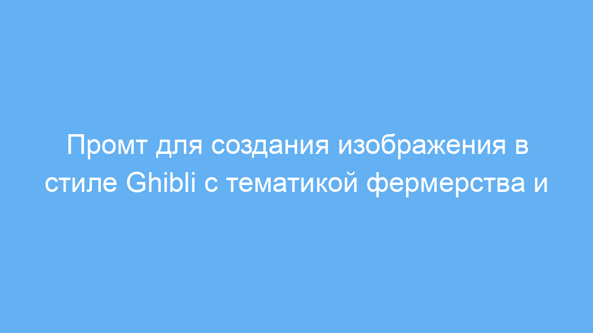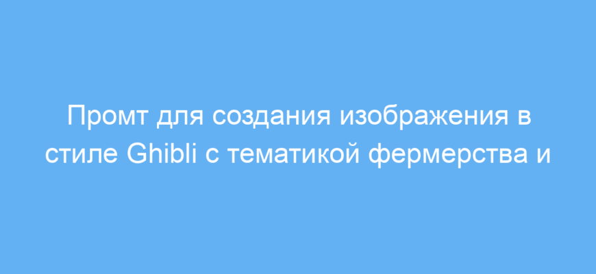 Этот промт предназначен для художников, дизайнеров, контент-мейкеров и всех, кто использует нейросети для генерации визуального контента в стиле знаменитой анимации Ghibli. Он помогает создавать атмосферные картинки с детализированными природными элементами и подчеркивает брендовый контекст — например, фермер, работающий утром на поле.
