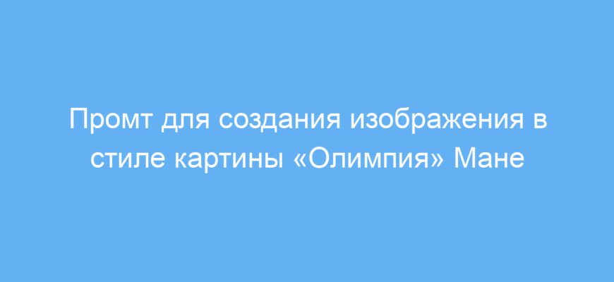 Этот промт экономит время и силы при создании изображения в уникальном художественном стиле «Олимпии» Мане. Он даёт чёткие указания нейросети, чтобы сохранить важные визуальные аспекты картины — светлый тон кожи, тёмный фон и классическую позу — что существенно облегчает получение нужного результата. Таким образом, вы быстро получаете качественное иллюстративное изображение для творчества, презентаций или образовательных проектов.