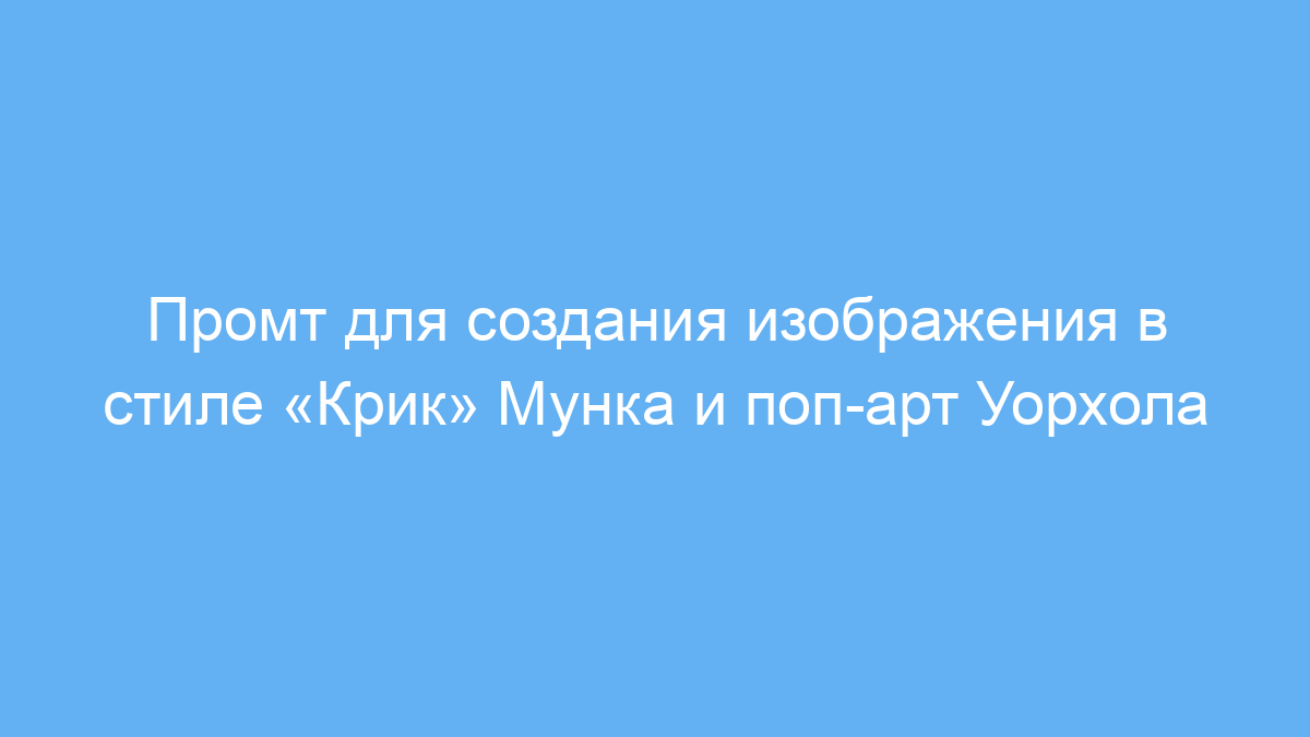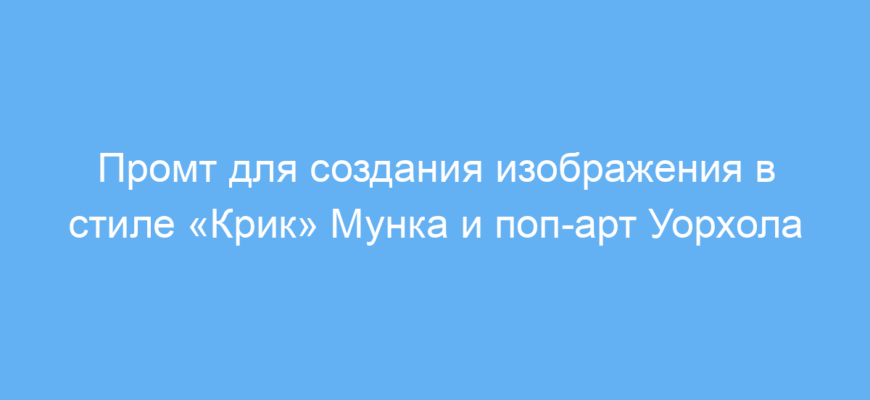 Этот промт создан для дизайнеров, художников и всех, кто хочет преобразить обычное фото в яркое художественное изображение. Особенно он полезен тем, кто работает с нейронными сетями для генерации арт-картинок и ищет необычные стилизации. Такой промт помогает получить визуал, сочетающий экспрессию картины «Крик» Эдварда Мунка с эффектностями поп-арта Энди Уорхола.