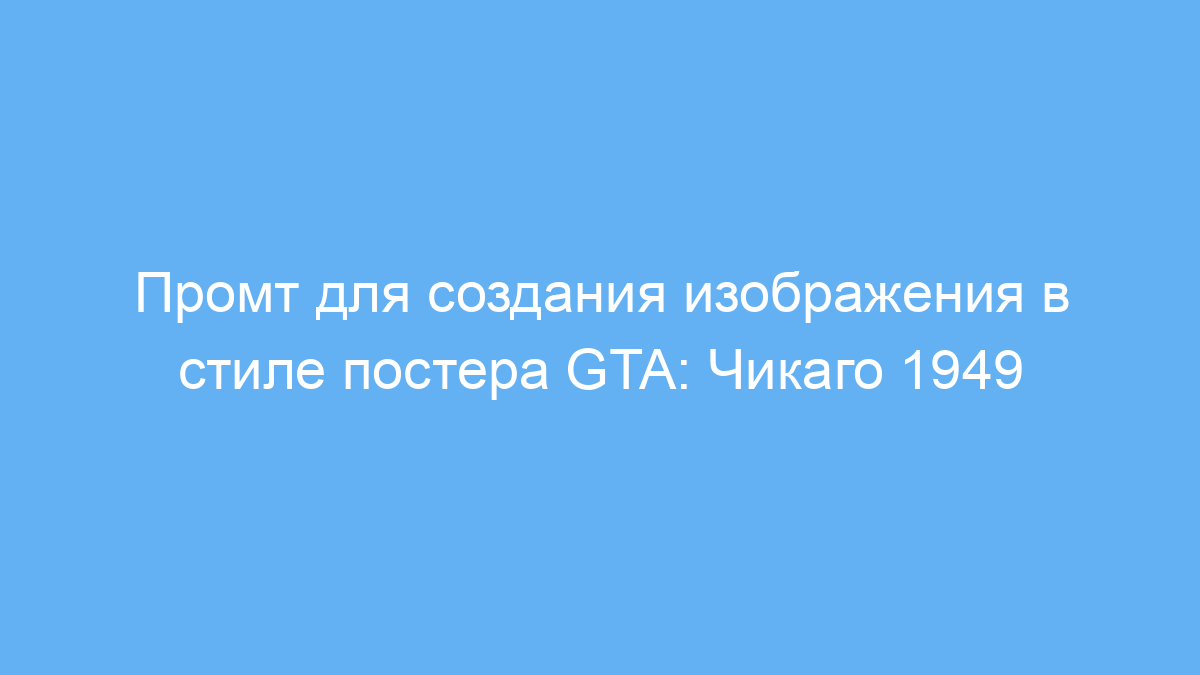 Этот промт экономит время и силы при создании уникальных художественных образов в узнаваемом стиле GTA 40-х годов. Он позволяет быстро адаптировать обычные фотографии под атмосферу ретро-игрового постера с чётко заданным настроением и деталями, что удобно для творческих проектов, рекламы или визуального оформления контента.
