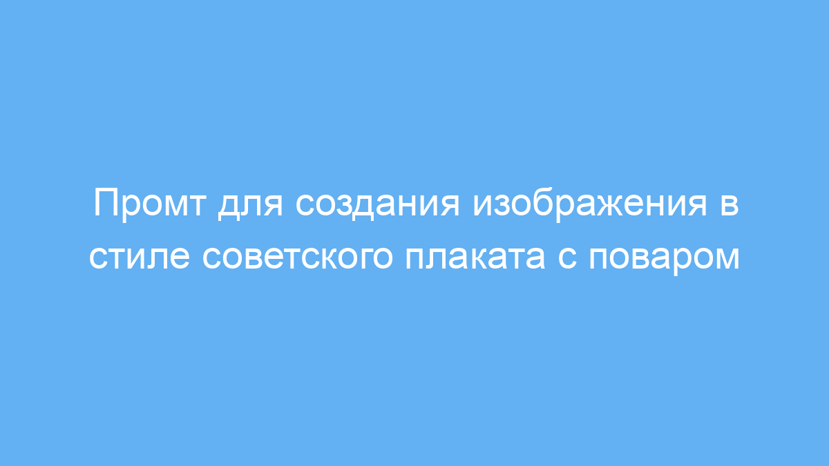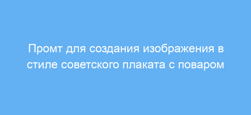 Данный промт предназначен для пользователей нейросетей, которые хотят быстро и легко получить изображения в стилистике советских плакатов. Особенно полезен он дизайнерам, маркетологам и авторам контента, которые хотят придать своим визуалам уникальную атмосферу прошлого века, используя образы с поваром и кухонной тематикой.