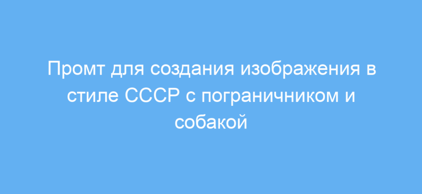 ✅ Пример: изображение в стиле СССР с пограничником и собакой на фоне границы, с сине-зеленой цветовой гаммой, эффектом тумана и надписью «Защитники рубежа», создающее атмосферу советской эпохи и безопасности.