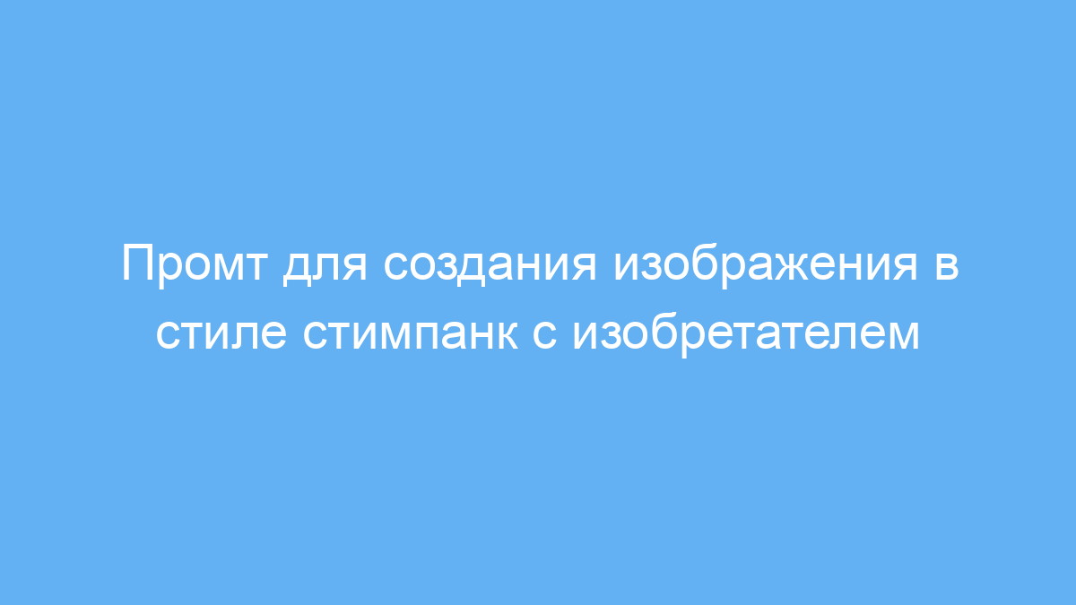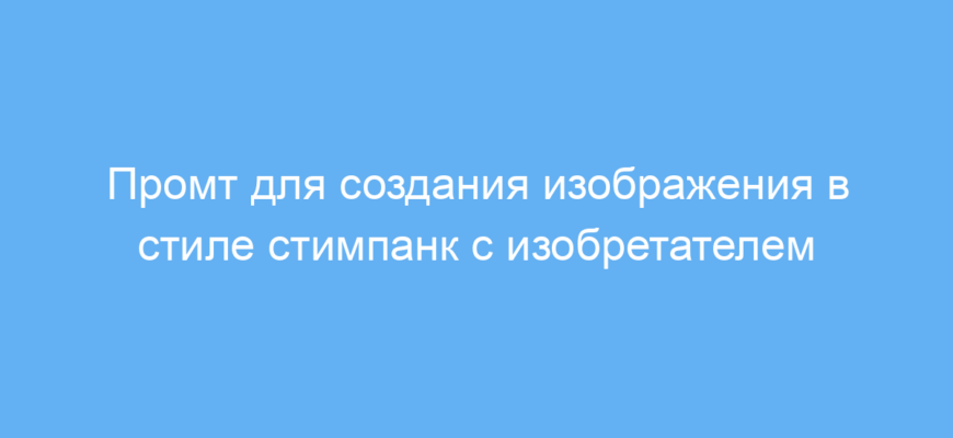 Этот промт предназначен для художников, дизайнеров и любителей стимпанка, которые хотят быстро получить качественное изображение в тематическом стиле. Он помогает создавать уникальные иллюстрации с детализированным образом изобретателя, используя характерные элементы стимпанка — шестерёнки, паровые двигатели и состаренный металл. Такой промт облегчает работу при подготовке иллюстраций для проектов, презентаций или вдохновения.