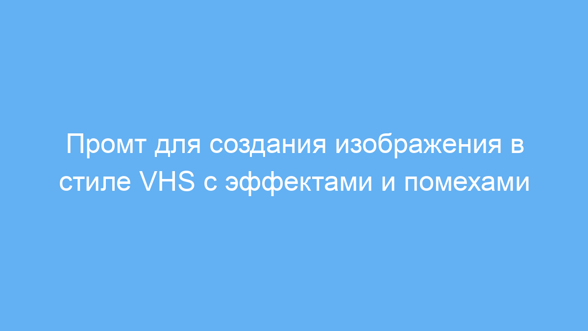 Промт работает так: он направляет нейросеть к созданию изображения с набором типичных характеристик VHS-ленты. Среди них — заметные помехи на экране, искажения из-за старения плёнки, размытие и засветы по краям кадра. Все вместе эти детали формируют реалистичный и аутентичный ретро-эффект.