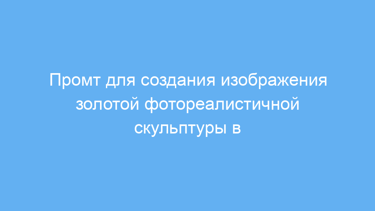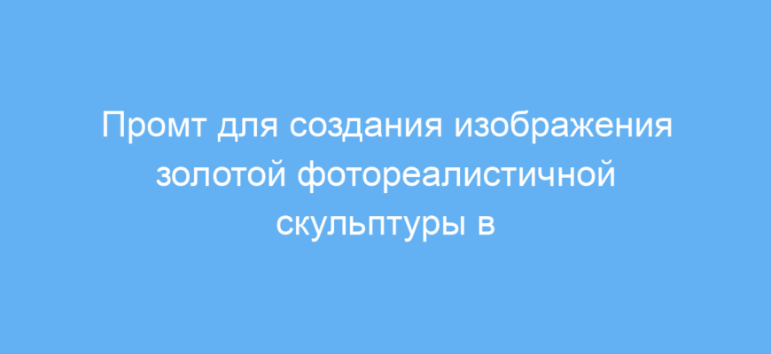 Промт описывает золотую скульптуру с фотореалистичной детализацией, частично покрытую снегом, расположенную в швейцарских Альпах и снятую с дрона. Это позволяет генерировать высококачественные изображения с красивым видом сверху и художественным эффектом. Такой промт решает задачи быстрого создания визуального контента для рекламы, сайтов, презентаций или учебных проектов.