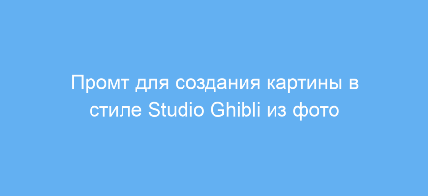 Принцип работы промта прост: нейросеть получает загруженное фото и трансформирует его, используя художественные особенности Studio Ghibli — плавные контуры, мягкие линии и нежный колорит. Благодаря этому картинка приобретает желаемую стилизацию, сохраняя оригинальный сюжет и делая его визуально привлекательным и уникальным.
