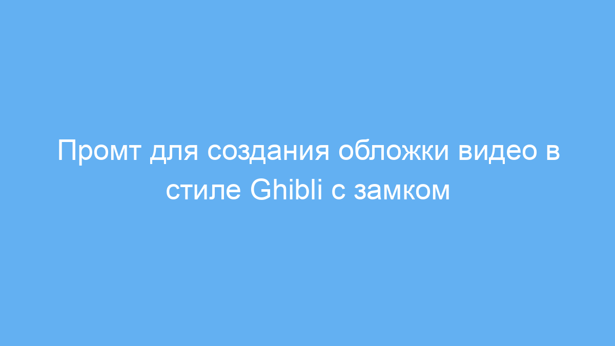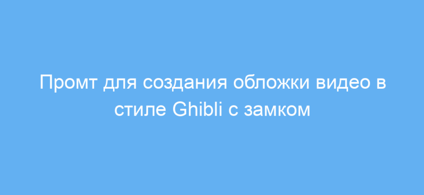 Этот промт предназначен для дизайнеров, видеомейкеров, создателей контента и всех, кто хочет быстро получить атмосферное изображение для обложки видео. Он помогает визуализировать сцены в стиле анимации студии Ghibli с определённой тематикой — старый замок в тумане с мягким светом. Такие изображения часто используют для привлечения внимания зрителей и создания нужного настроения.