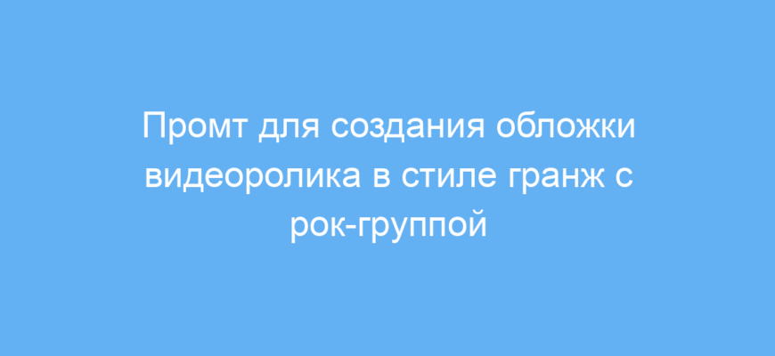 ✅ Пример: Обложка видеоролика с рок-группой на сцене, выполненная в гранж-стиле с потертыми текстурами, тёмными и насыщенными цветами, подчёркивающими живую атмосферу концерта.