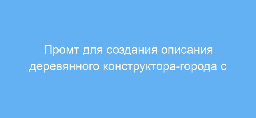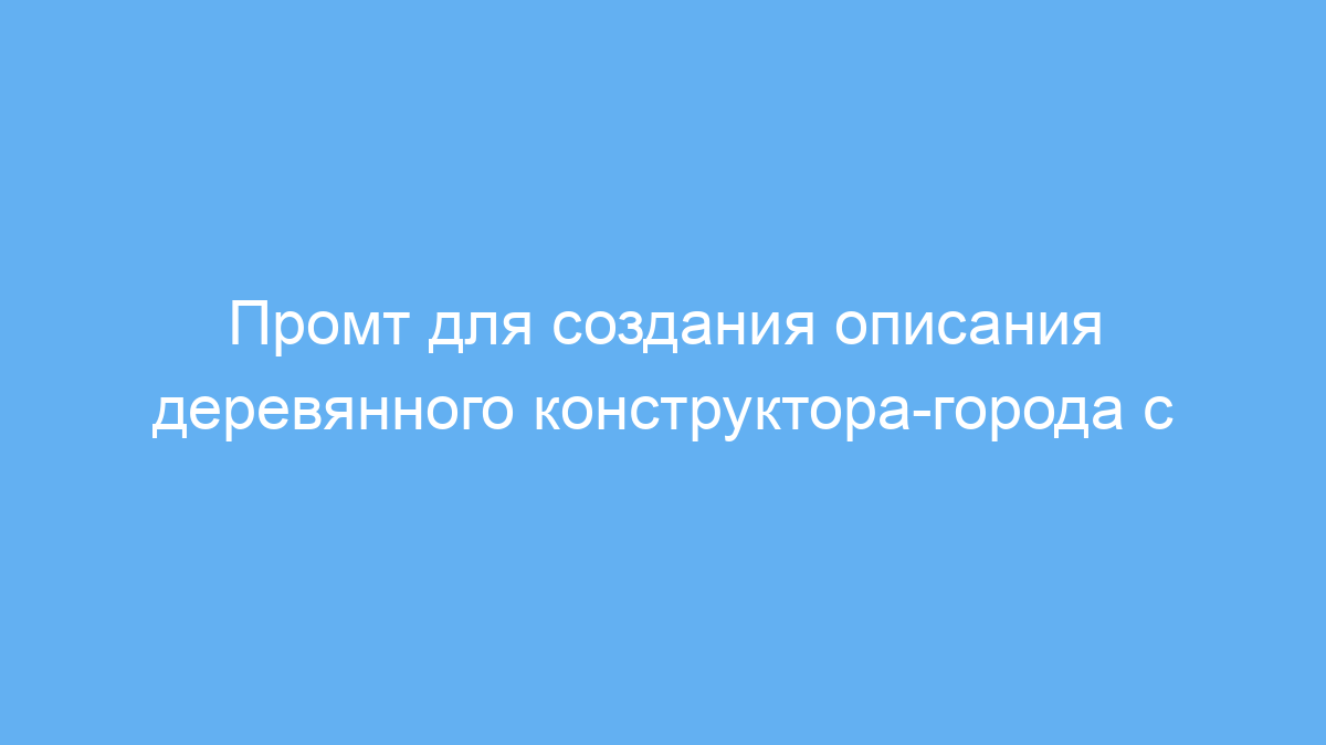 Этот промт предназначен для дизайнеров, маркетологов и создателей контента, которым нужно быстро получить качественное описание деревянного конструктора-города с мини-фигурками. Он помогает экономить время на генерацию визуальных и текстовых концепций для презентаций, сайтов или рекламных материалов.