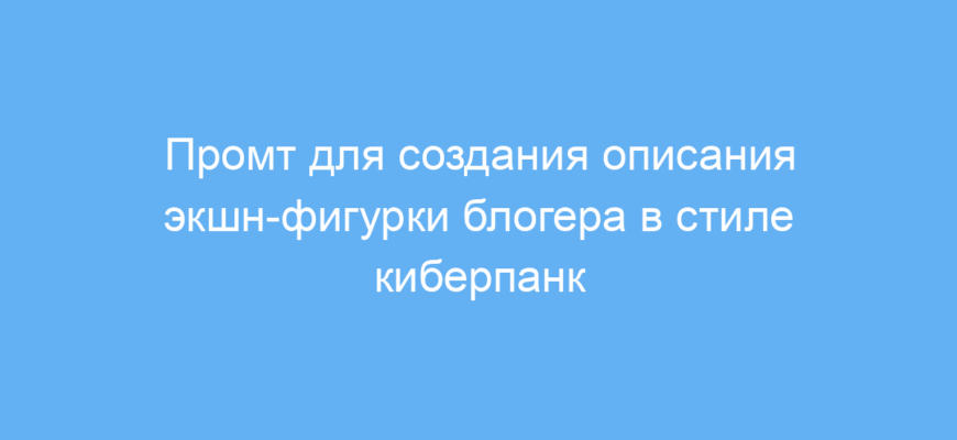 Этот промт предназначен для дизайнеров, маркетологов и создателей контента, которым нужно быстро и качественно сгенерировать описание именно для экшн-фигурки блогера. Он особенно полезен тем, кто работает с визуальными элементами и хочет зафиксировать все важные детали изделия в одном тексте — от позы фигурки до оформления упаковки и фона снимка.