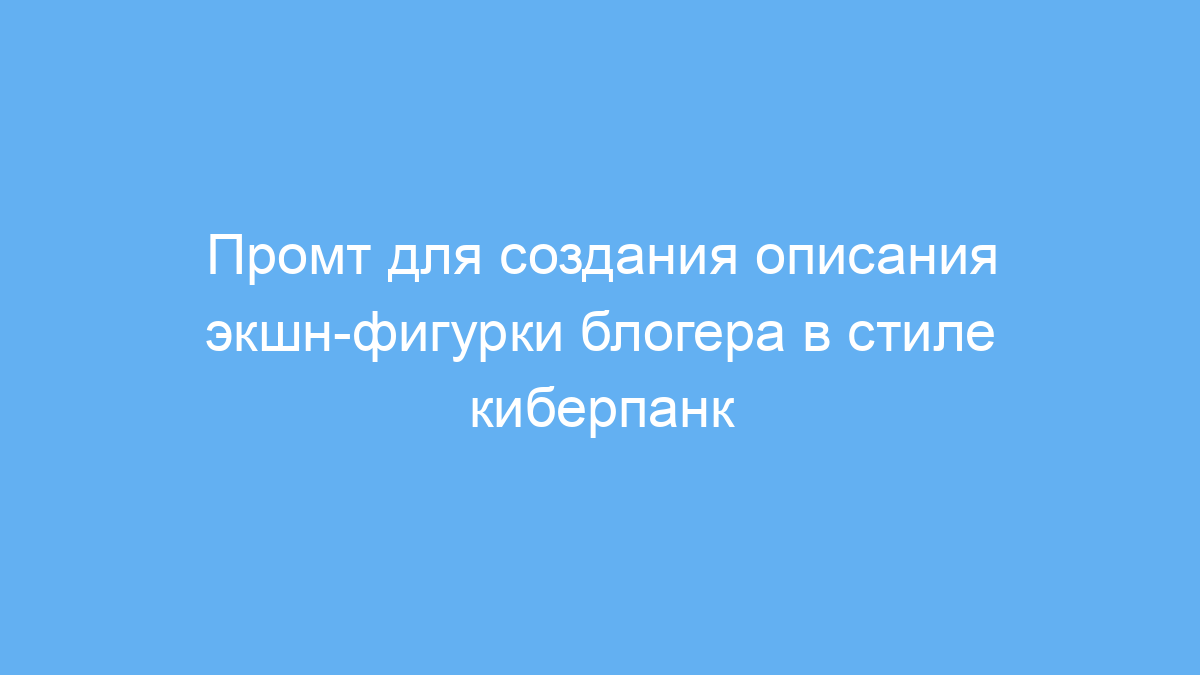Данный промт помогает быстро получать детальные и стильные описания экшн-фигурок блогеров с учётом всех важных элементов внешнего вида и упаковки. Это экономит время на подготовку текстовой части для каталога или рекламы, а также улучшает качество подачи продукта.