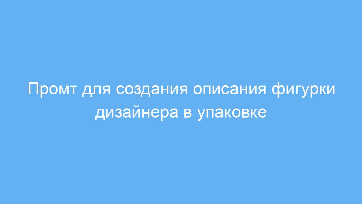 Промт решает задачу генерации образного и точного описания фигурки дизайнера в динамичной позе с элементами упаковки — прозрачной коробкой, аксессуарами и надписями. Это упрощает процесс подготовки контента и экономит время на написание, особенно когда нужны яркие и правдоподобные тексты для визуального представления продукта.