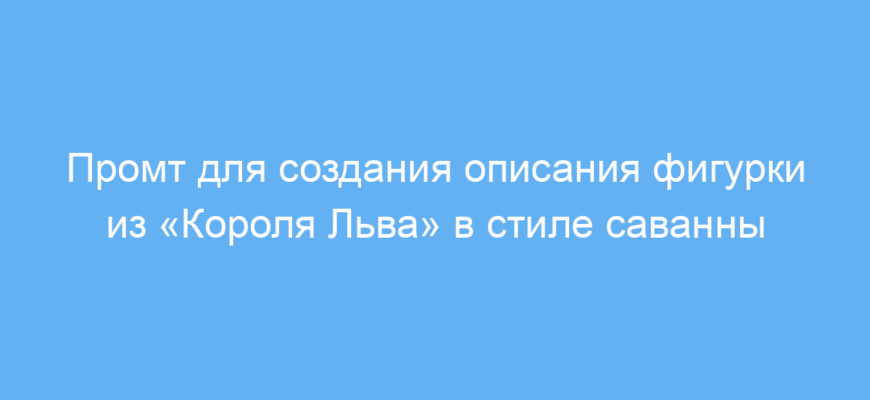 Этот промт предназначен для тех, кто создаёт контент с помощью нейросетей, особенно описания товаров и коллекционных фигурок. Он помогает быстро и точно сформулировать подробное описание пластиковой фигурки из мультфильма «Король Лев», благодаря чему экономит время и повышает качество текстов.