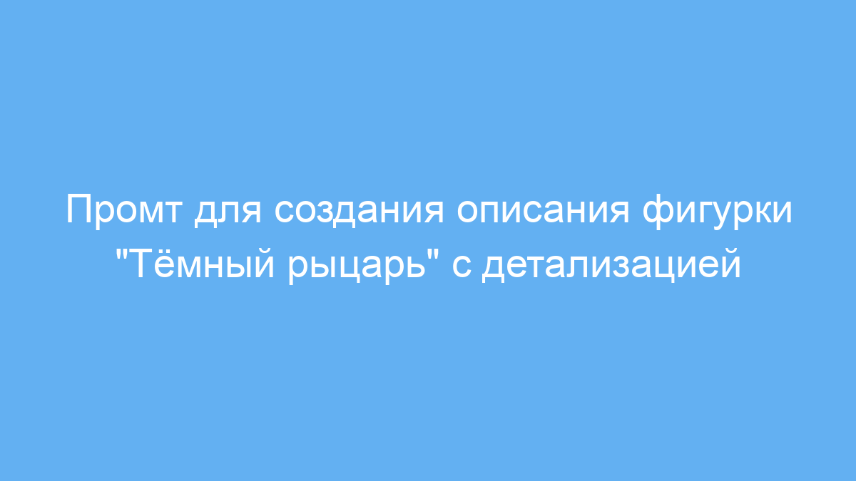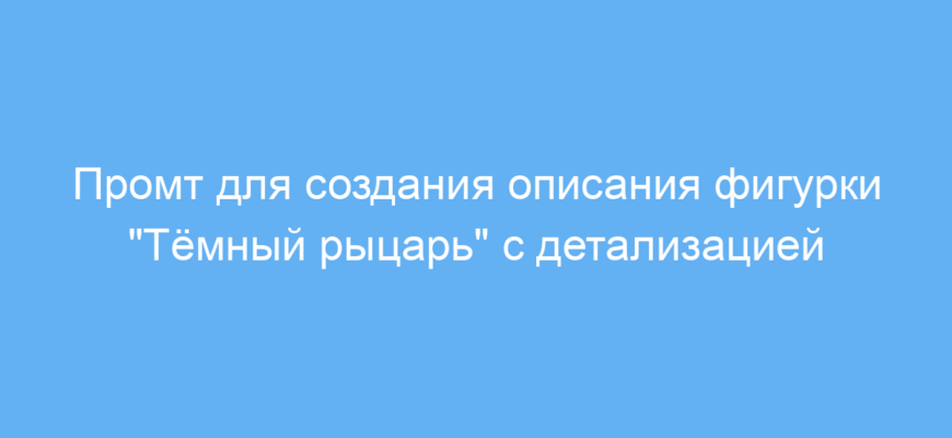 Этот промт помогает быстро и качественно создать насыщенное описание фигурки «Тёмный рыцарь» с акцентом на атмосферу, детали и дизайн упаковки. Вы экономите время и получаете текст, который легко использовать для рекламы, каталогов или описаний товаров.