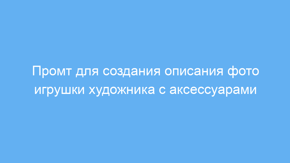 Этот промт пригодится дизайнерам, маркетологам, владельцам магазинов игрушек и создателям контента, которые хотят быстро получить качественное описание изображения игрушки художника. Промт помогает сгенерировать детальное и творческое описание с учётом всех важных элементов: фигурка, аксессуары, коробка с надписями и фон. Это облегчает создание презентаций, каталожных карточек, рекламных текстов и постов в социальных сетях.