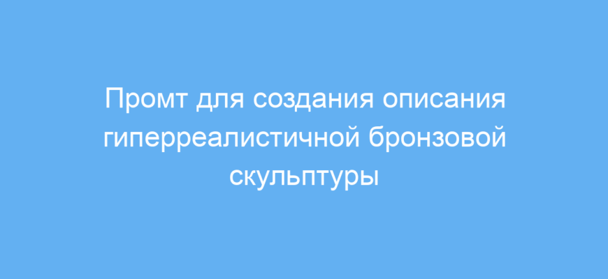 Этот промт пригодится всем, кто использует нейросети для генерации текстов по изображениям или концепциям искусства. Он помогает создавать детальные и эффектные описания фото, особенно если нужно подчеркнуть особый стиль и место размещения скульптуры. Например, дизайнеры, маркетологи, создатели контента или студенты, работающие с визуальными материалами, смогут быстро получить выразительный и четкий текст.