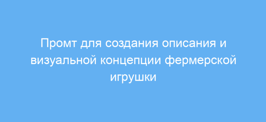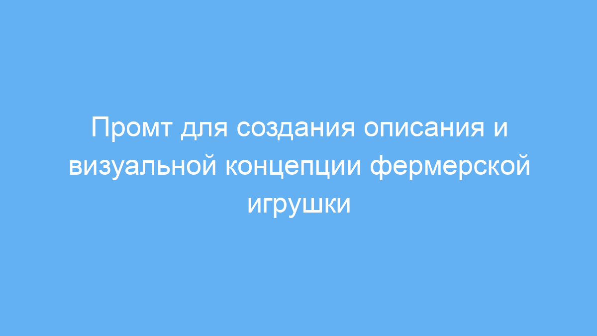 Этот промт предназначен для дизайнеров, маркетологов и авторов текстов, которые хотят быстро получить качественное описание и визуальную идею для игрушки на фермерскую тематику. Используя нейросеть, вы экономите время на придумывании концепции и стилистики оформления упаковки.