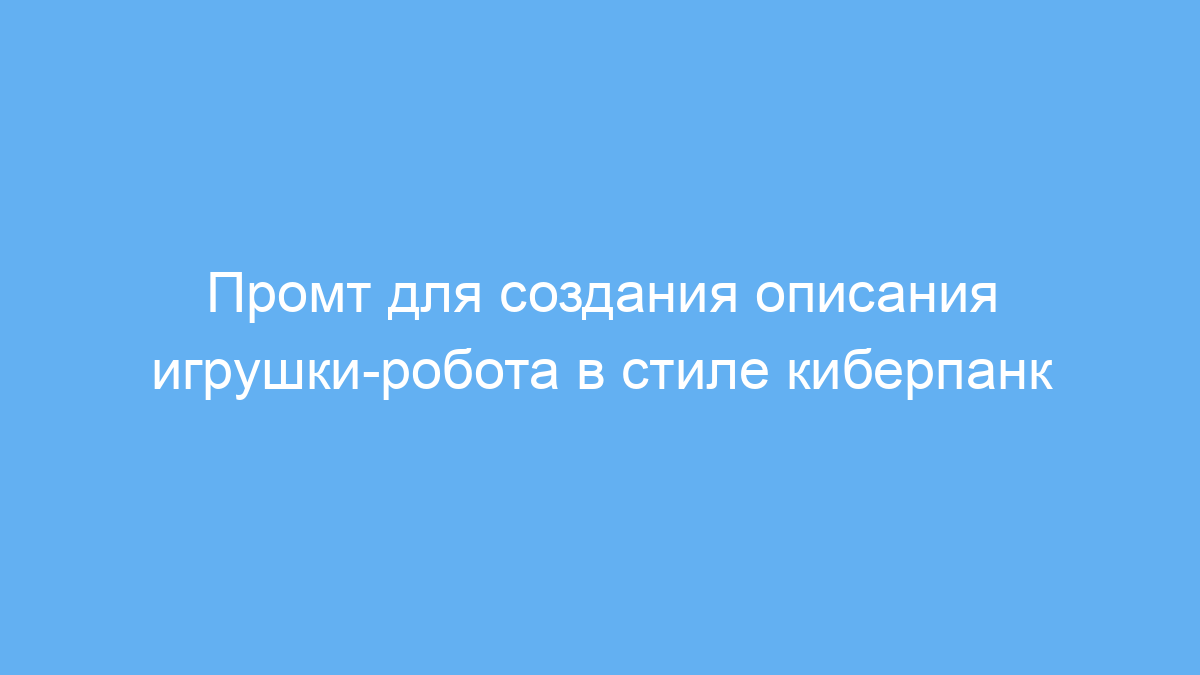 Промт задаёт нейросети чёткие инструкции — описать роботизированную игрушку, её механические элементы и окружение, используя нижний ракурс и неоновую подсветку на постаменте. Также он включает указание на гравировку с индивидуальным лозунгом, чтобы добавить персонализации. Такой подход помогает получить текст, который передаёт масштаб, стиль и особенности объекта.