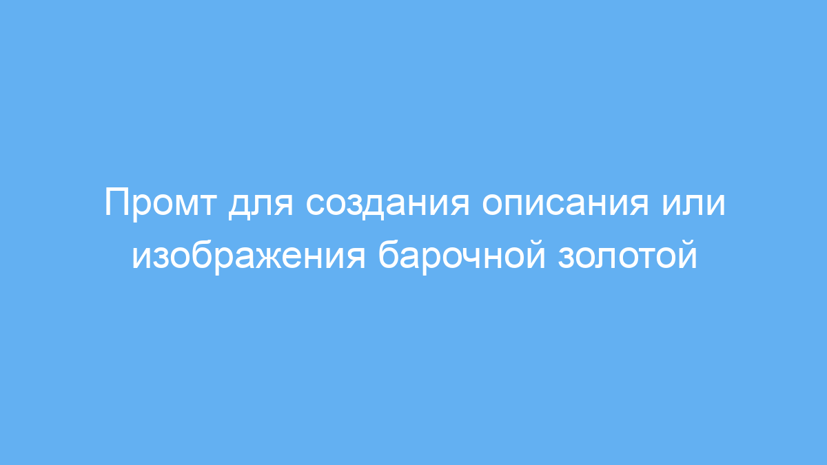 Этот промт предназначен для пользователей нейронных сетей, которые хотят получить качественное описание или визуальное изображение золотой скульптуры человека, выполненной в стиле барокко, расположенной внутри собора в Риме. Промт учитывает исторические и художественные особенности эпохи барокко, а также архитектурные детали римских соборов.