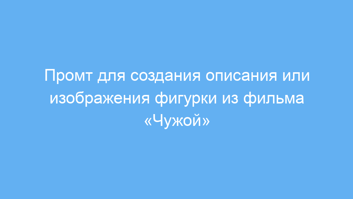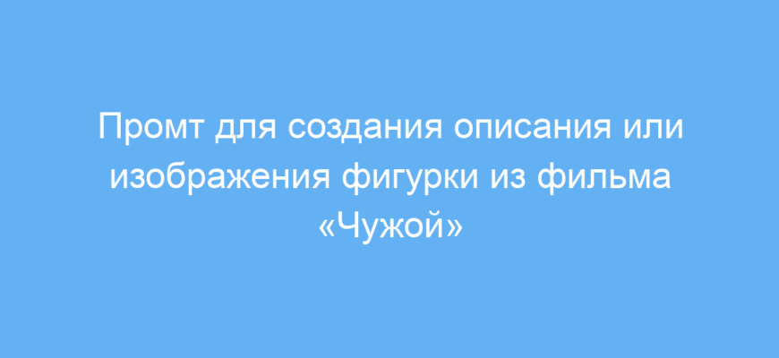 Этот промт существенно упрощает процесс создания качественного, визуально насыщенного описания или изображения, связанного с фигуркой из «Чужого». Он помогает быстро получить материал, подходящий для каталогов, интернет-магазинов и проектов, связанных с фильмом, экономя время и повышая качество контента.