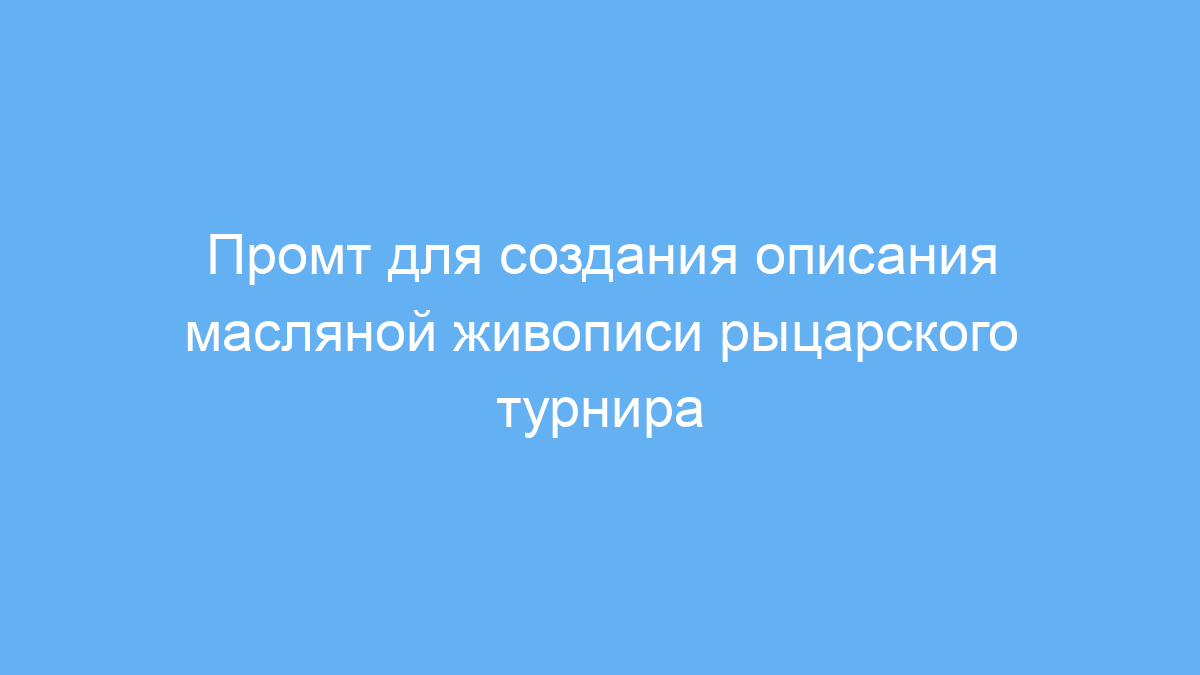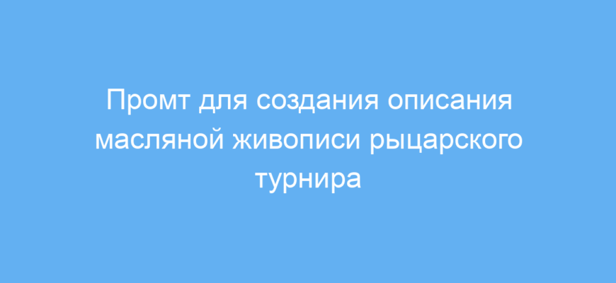 Используя этот промт, вы легко и быстро получаете атмосферное и художественно насыщенное описание сцены рыцарского турнира в стиле масляной живописи. Это значительно экономит время на поиски нужных слов и помогает создать качественный контент для самых разных проектов — от арт-каталогов до креативных задумок.