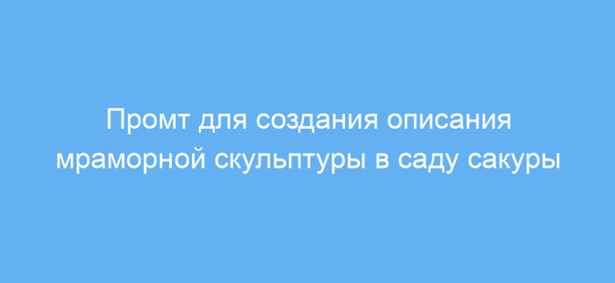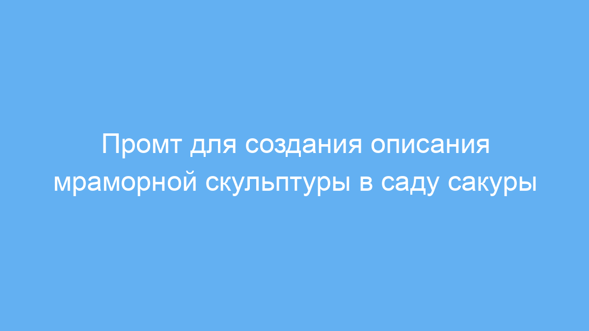 Этот промт предназначен для тех, кто хочет получить точное и подробное описание мраморной скульптуры человека, установленной в саду сакуры в Японии. Часто требуется создать содержательный текст для сайтов, каталогов, музейных экспозиций или образовательных материалов. Промт помогает быстро и удобно создать качественное описание, включающее важную деталь — выгравированный текст на скульптуре, что обычно сложно сформулировать самостоятельно.