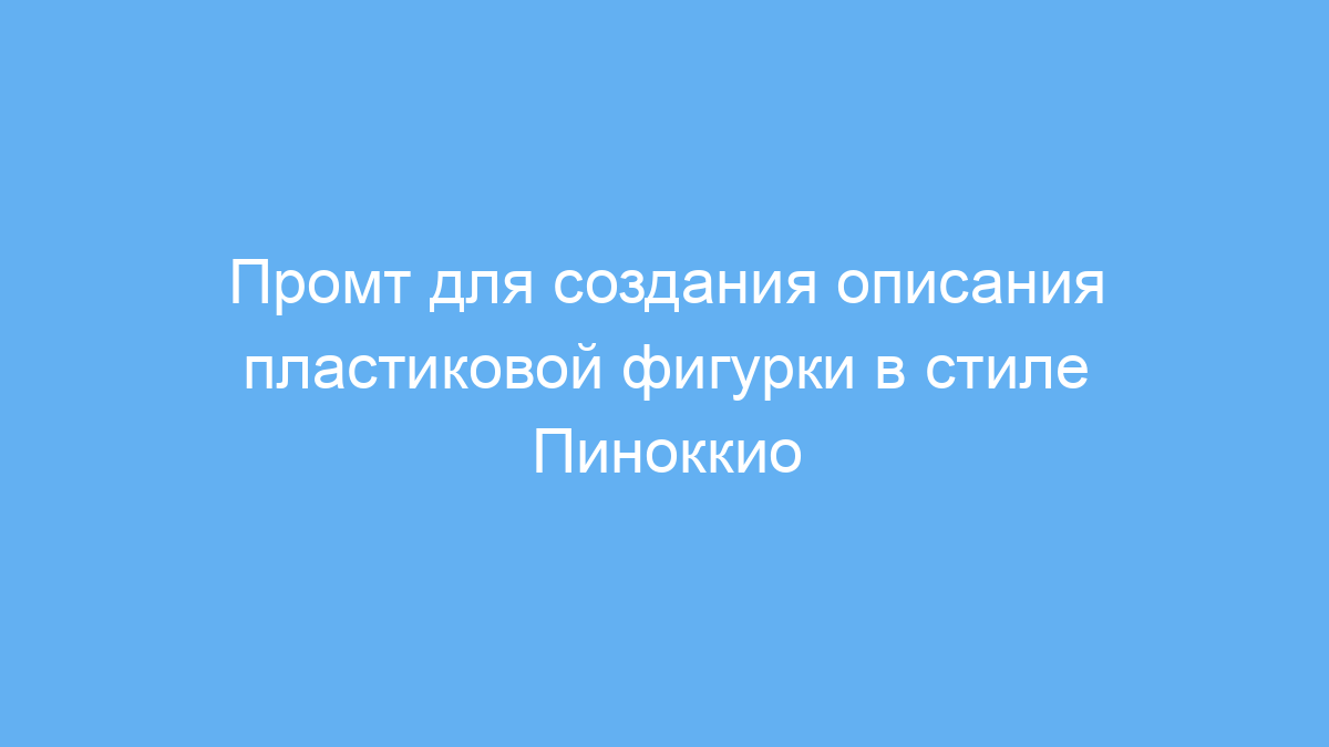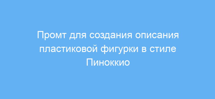 Использование данного промта экономит время на написание текстов для описания фигурок, гарантируя, что вы получите интересный и качественный результат с атмосферным акцентом на дизайн и стиль Пиноккио. Это поможет сделать карточки товара более привлекательными и увеличить вовлечённость покупателей.