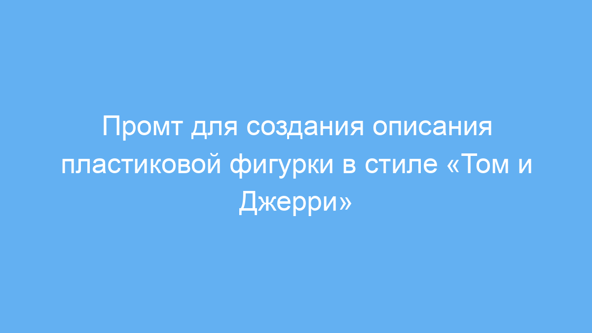Этот промт предназначен для дизайнеров, маркетологов, продавцов сувениров и контент-менеджеров, которые хотят быстро получить яркое и запоминающееся описание пластиковой фигурки. Он помогает создавать тексты, которые передают стиль старого доброго мультфильма «Том и Джерри», что особенно важно для привлечения фанатов и коллекционеров.