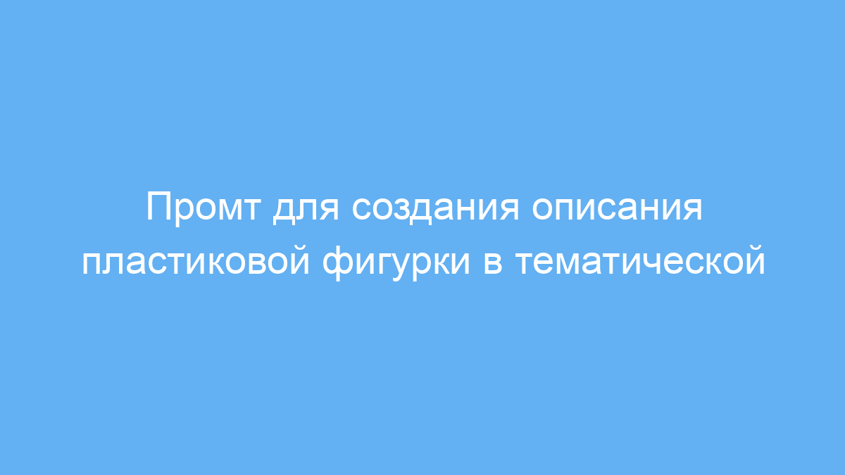 Этот промт предназначен для пользователей, которые хотят автоматически получить детальное и атмосферное описание предмета — в данном случае пластиковой фигурки с тематической металлической коробкой. Он подходит дизайнерам, копирайтерам, разработчикам контента и всем, кто работает с визуальным или текстовым представлением объектов в сфере искусства, маркетинга, игр или коллекционирования.