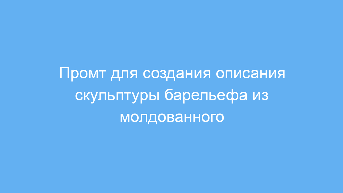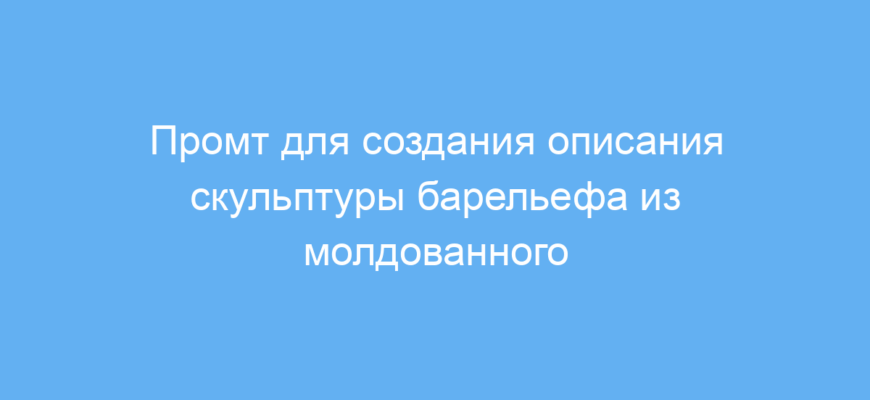 Этот промт предназначен для пользователей нейросетей, которые хотят получить детальное и художественное описание скульптурного барельефа на основе готового задания. Особое внимание уделяется материалу — молдованному песчанiku — и расположению на вершине холма в Сиднее. Также учитывается необычная точка зрения — вид с низкого угла, и стилистика исполнения — акварель.