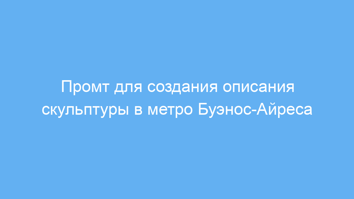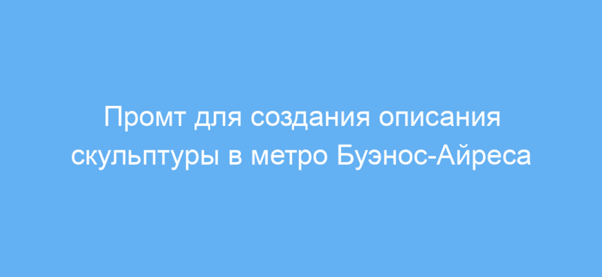 Этот промт предназначен для пользователей нейросетей, которым необходимо быстро сгенерировать визуальное и художественное описание скульптуры в необычном месте — внутри туннелей метро Буэнос-Айреса. Он помогает создавать яркие, кинематографичные образы, которые можно применять для иллюстраций, сценариев, рекламных материалов или концепт-артов.