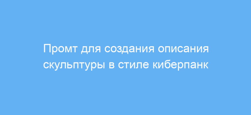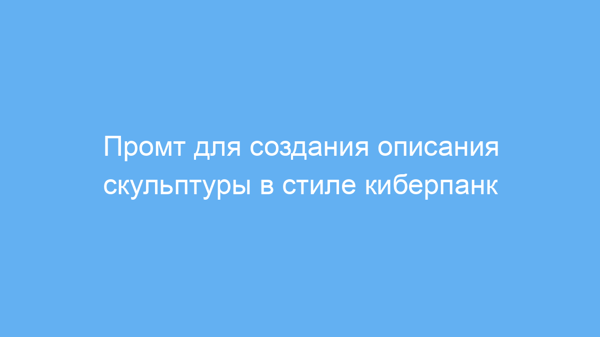 Этот промт предназначен для пользователей нейросетей, которые хотят быстро получить детальное и стилизованное описание новой скульптуры. Особенно полезен он для дизайнеров, писателей, маркетологов и всех, кто работает с визуальным и текстовым контентом в тематике киберпанка и урбанистики.