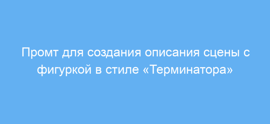 Пример 1: Создать атмосферное описание сцены для обложки фанатского проекта о «Терминаторе», где пластиковой фигуркой является Т-800, и необходимо подчеркнуть атмосферу будущей войны.