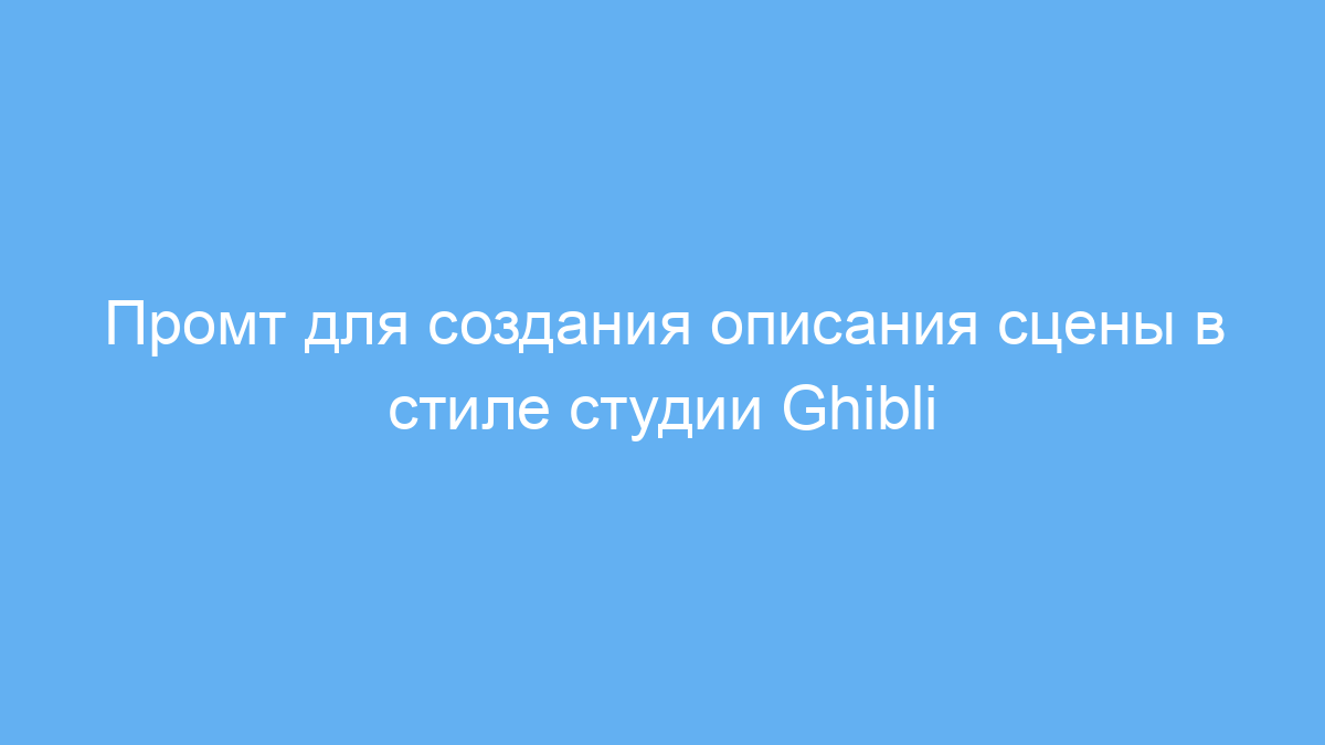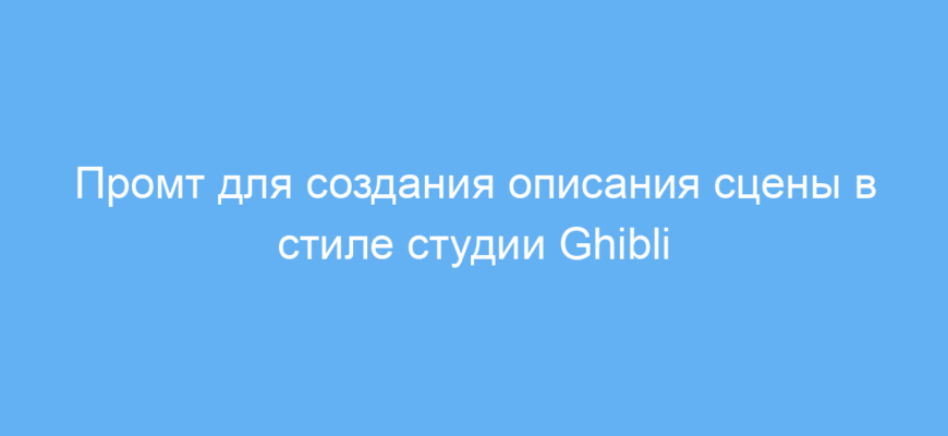 Данный промт позволяет быстро и качественно получить атмосферное описание в стиле студии Ghibli, что значительно экономит время на творческом этапе. Его легко модифицировать под разные задачи, от вдохновения для письменных работ до создания художественных концептов.