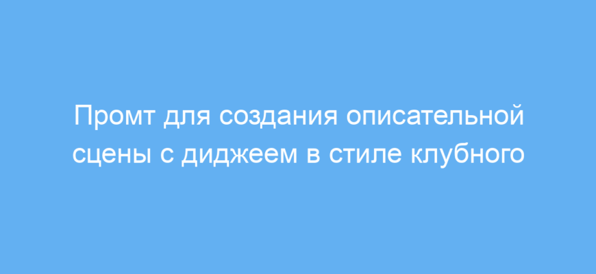 Данный промт значительно упрощает создание чёткой и выразительной картинки с диджеем в клубной атмосфере. Он экономит время на детализацию и помогает быстро получить готовое изображение с нужными элементами, которые сразу подходят для визуального сопровождения музыкальных проектов.