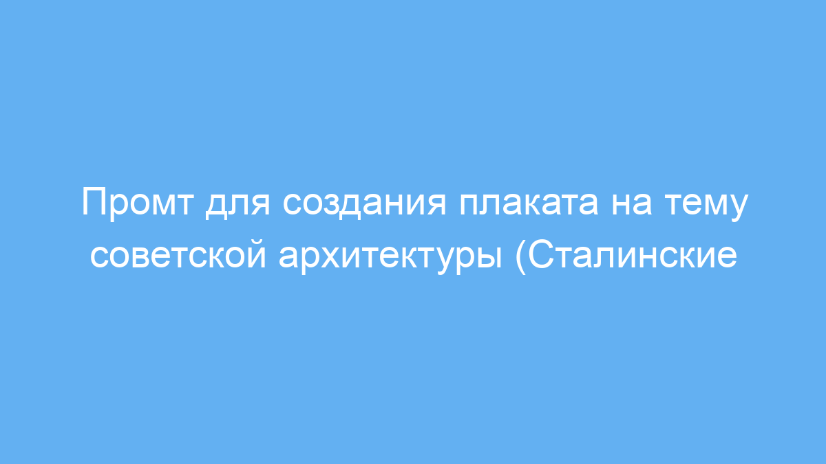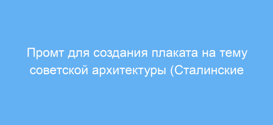 Этот промт предназначен для дизайнеров, иллюстраторов и тех, кто создаёт визуальный контент с помощью нейросетей. Он позволяет быстро получить качественный плакат в уникальном стиле, посвящённый советской архитектуре и сталинским высоткам. Вы можете использовать его для оформления выставок, образовательных материалов или социальных сетей.