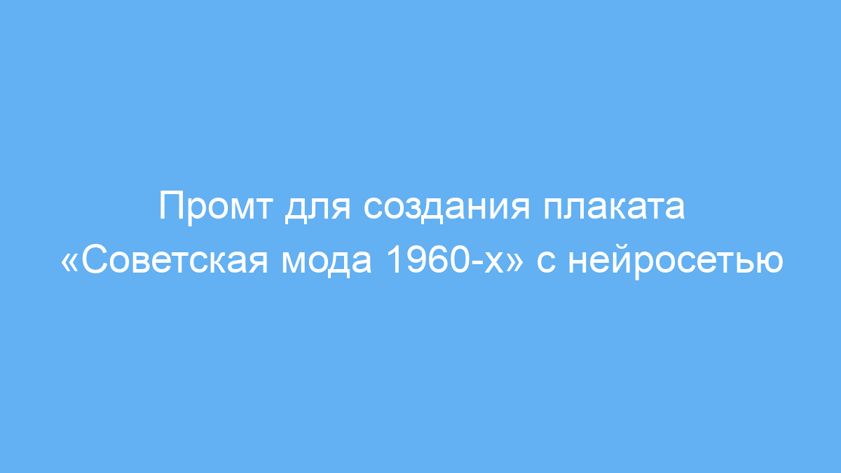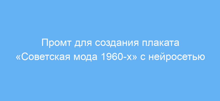 Промт упрощает процесс создания оригинальных плакатов, помогая быстро получить визуально привлекательный материал, который точно передает стиль советской моды 1960-х. Это экономит время и силы, а также позволяет без специальных знаний получить профессионально выглядящий арт.