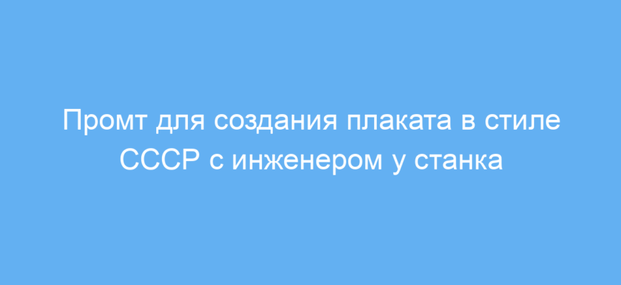 Нейросеть сгенерирует плакат, на котором изображён мужчина-инженер в рабочей форме, стоящий возле крупного токарного станка. Фон — цех завода выполнен в серых оттенках, детали и шрифт надписи — в красных цветах. Эффект зернистости придаёт изображению винтажный вид советского плаката. Имя инженера чётко размещено внизу или сбоку плаката.
