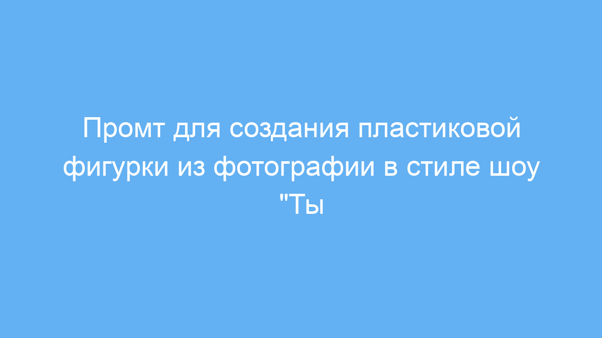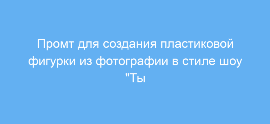 Данный промт поможет пользователям создавать уникальные изображения пластиковой фигурки на основе фотографии. Он идеально подходит для артистов, дизайнеров, блогеров или всех, кто хочет визуализировать фото в виде сувенира или презентации в стиле популярного шоу «Ты супер!». Среди решаемых задач — быстрое и эффектное оформление фотографии в узнаваемой тематике с реквизитом и сценой, что удобно для проектов, соцсетей или рекламы.