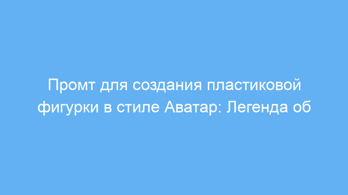 Этот промт предназначен для пользователей, которые хотят сгенерировать изображение пластиковой фигурки в стиле популярного мультсериала «Аватар: Легенда об Аанге». Его можно использовать блогерам, дизайнерам, художникам и фанатам, желающим визуализировать фигурку из своей фотографии с тематическим оформлением. Такой промт помогает быстро получить качественное, стилизованное изображение для дальнейшего использования в презентациях, соцсетях или творческих проектах.