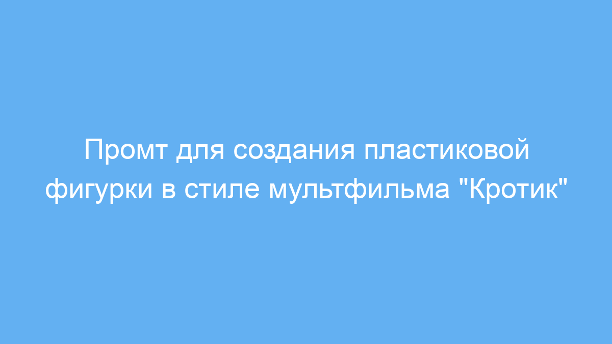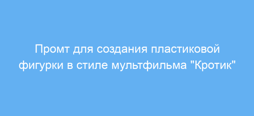 Этот промт предназначен для пользователей нейросетей, которые хотят быстро и качественно создать изображение пластиковой фигурки, стилизованной под мультфильм «Кротик». Он полезен художникам, дизайнерам, маркетологам и энтузиастам, которым нужно получить визуализацию продукта или концепта с минимальными усилиями.
