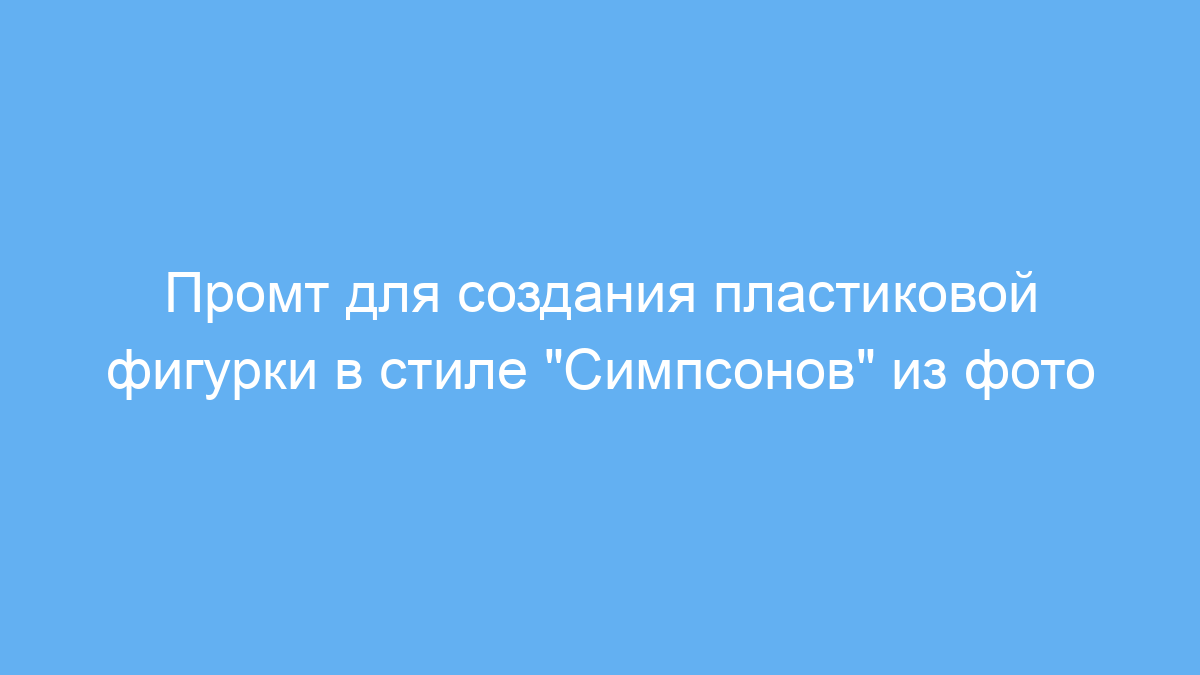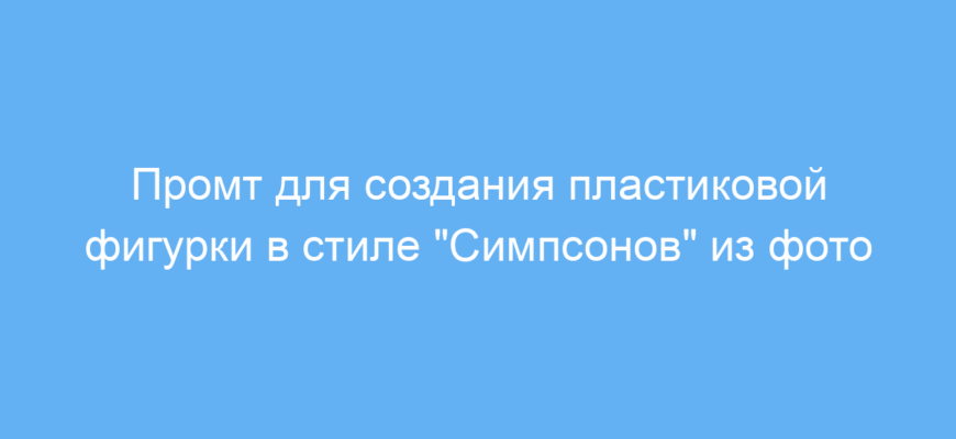 Этот промт предназначен для тех, кто хочет получить уникальный визуальный результат — пластиковую фигурку, стилизованную под мультсериал «Симпсоны», на основе вашей фотографии. Такой запрос помогает решить задачу персонализации сувениров, подарков или элементов для дизайна, объединяя реальные фото с узнаваемым стилистическим оформлением.