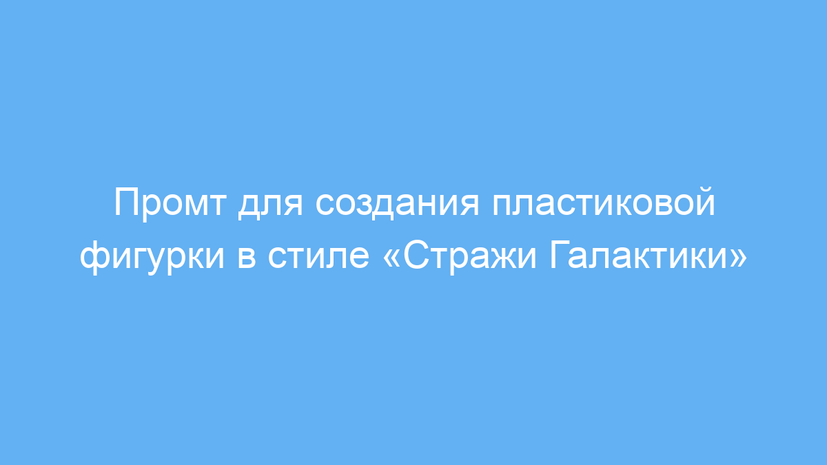 Этот промт значительно экономит время и силы при создании визуализаций фигурок в фирменном стиле «Стражей Галактики». Он помогает получить качественные, детализированные изображения с нужной стилистикой и текстом без сложных настроек, что удобно как профессионалам, так и любителям. Использование промта упрощает процесс генерации и повышает шансы на успешный результат с первого раза.