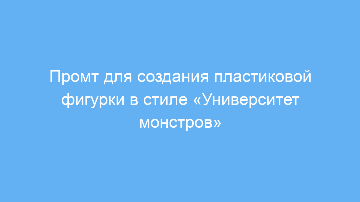 Этот промт предназначен для тех, кто хочет сгенерировать образ пластиковой фигурки по фотографии в популярном мультяшном стиле «Университет монстров». Такой промт особенно полезен дизайнерам, иллюстраторам и создателям контента, которые работают с нейросетями и хотят быстро получить визуализацию с конкретным фоном и элементами сцены.