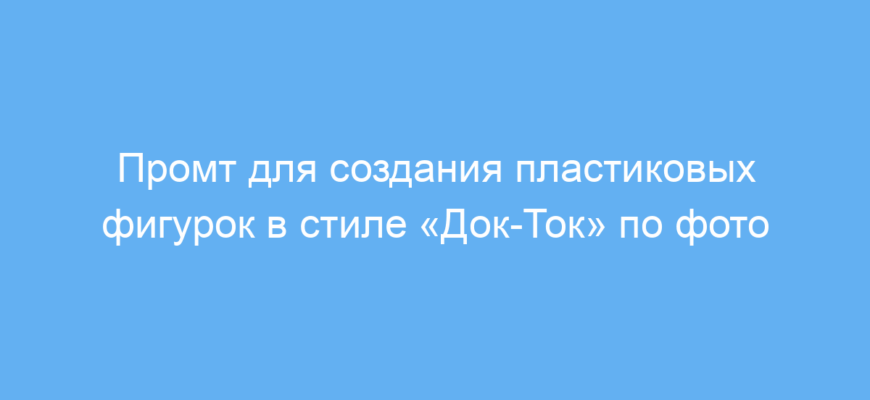 Этот промт предназначен для пользователей нейросетей, которые хотят получить изображение пластиковых фигурок по фотографии в уникальном стиле «Док-Ток». Он поможет создать визуализации с четкими деталями, включая минималистичный фон и разные предметы, такие как табличка «Док», iPad, бутылка воды, наушники и диаграмма. Такой подход позволит сэкономить время на сложном 3D-дизайне и использовать результат для презентаций, рекламы или социальных сетей.