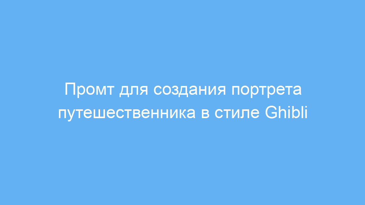 Этот промт создан для художников, дизайнеров и любителей нейросетей, которые хотят получить уникальный портрет в анимационном стиле студии Ghibli. Он помогает быстро и легко создавать яркие образы путешественника, оказавшегося в параллельных мирах. Такой визуал отлично подходит для арт-проектов, иллюстраций, обложек и вдохновения.