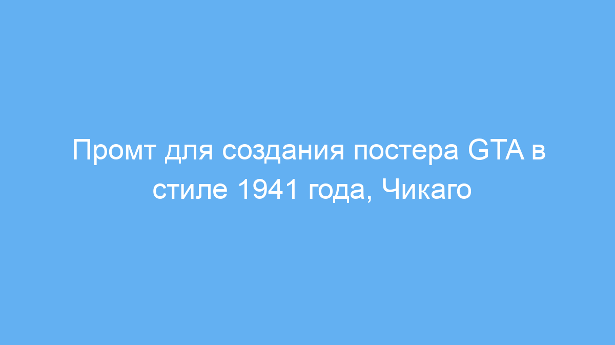 Этот промт предназначен для тех, кто хочет преобразовать обычную фотографию в уникальный художественный постер в стиле видеоигры Grand Theft Auto, с атмосферой Чикаго времен Второй мировой войны. Его используют дизайнеры, иллюстраторы и создатели контента, желающие быстро получить креативное визуальное оформление с узнаваемым стилем GTA и историческими деталями.