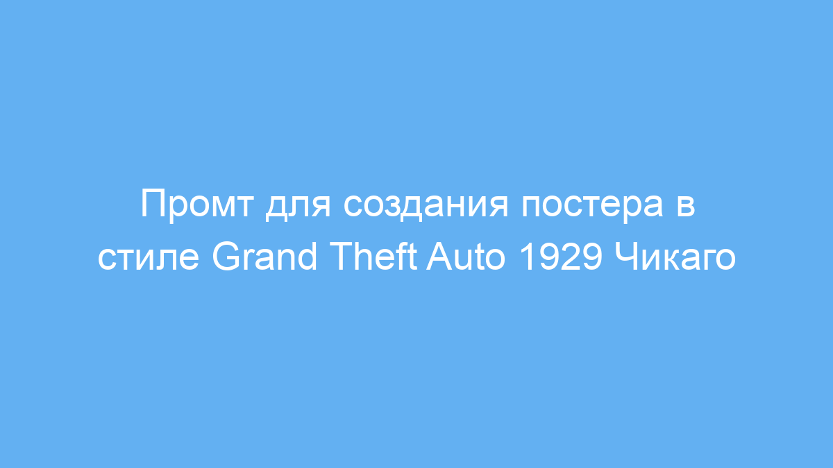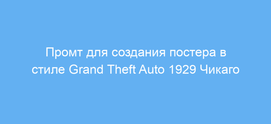 Использование данного промта ускоряет создание стильных, узнаваемых изображений в стилистике GTA эпохи Сухого закона. Вы экономите время на детализацию и подбор визуальных элементов, сразу получая готовый арт, который подходит для коммерческих и творческих проектов.