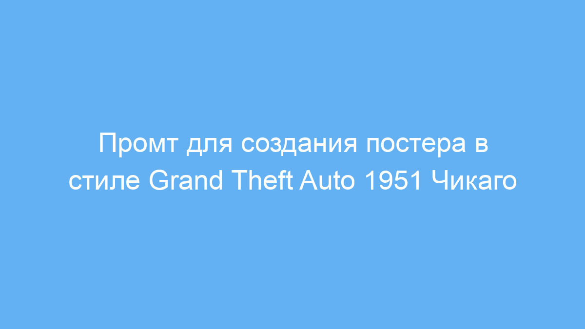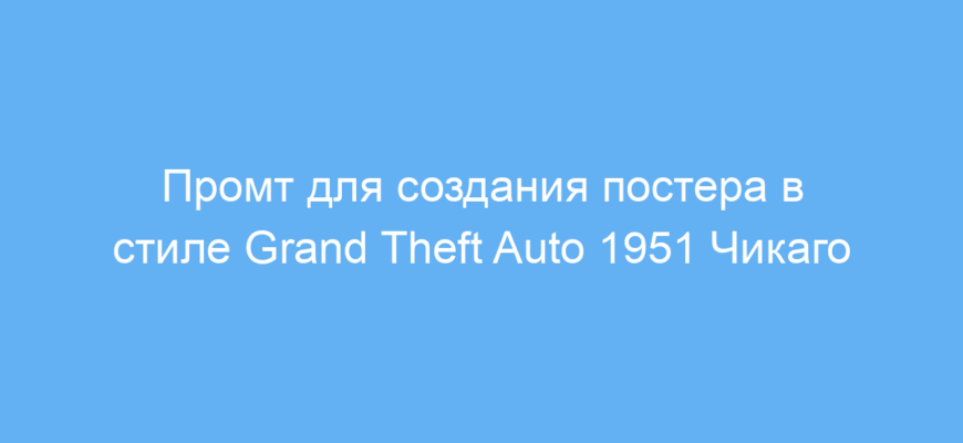 Промт позволяет получить изображение с характерным художественным стилем GTA, адаптированное под послевоенный Чикаго. Это решение отлично подойдет для обложек игр, тематических мероприятий, рекламных материалов или просто для вдохновения. Использование нейросети в данном случае упрощает сложные художественные задачи, создавая детализированный и стилистически точный результат.